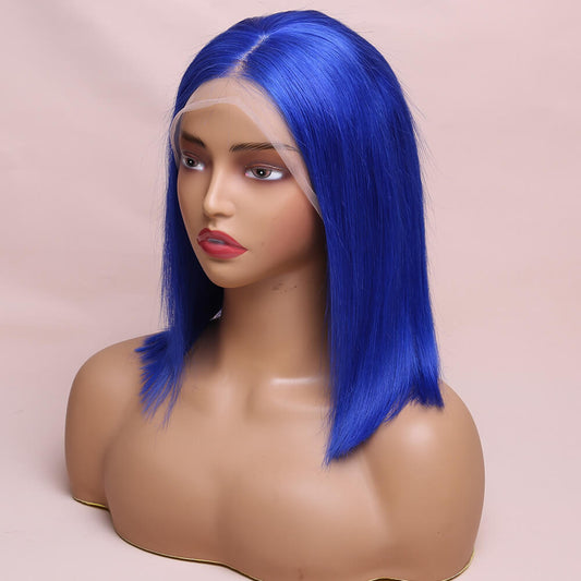 Human Hair Blue Straight Lace Frontal Bob Wig Short Wig