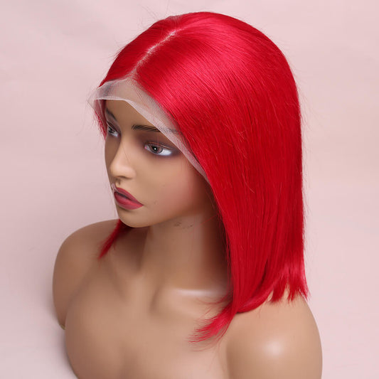 Human Hair Red Straight Lace Frontal Bob Wig Short Wig