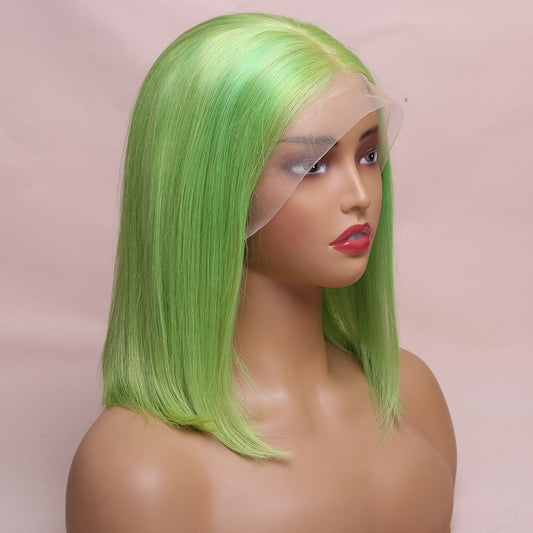 Human Hair Green Straight Lace Frontal Bob Wig Short Wig