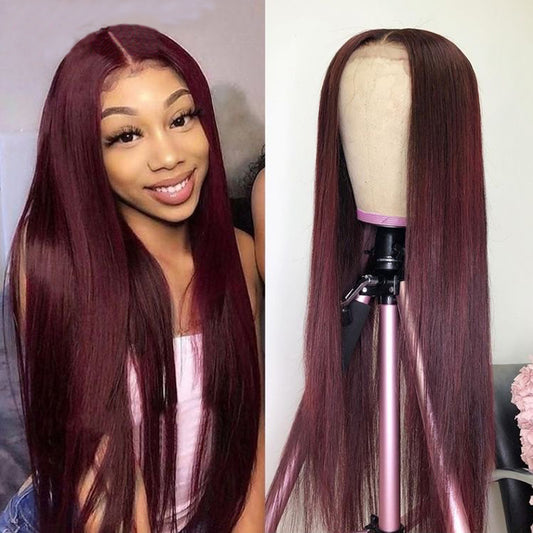 Red Burgundy Color 13x4 Lace Front Wig Straight Human Hair Wigs