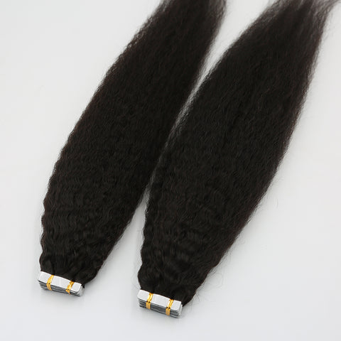 Kinky Straight Tape in Hair Extension 12-30inch Human Hair Pu Weft