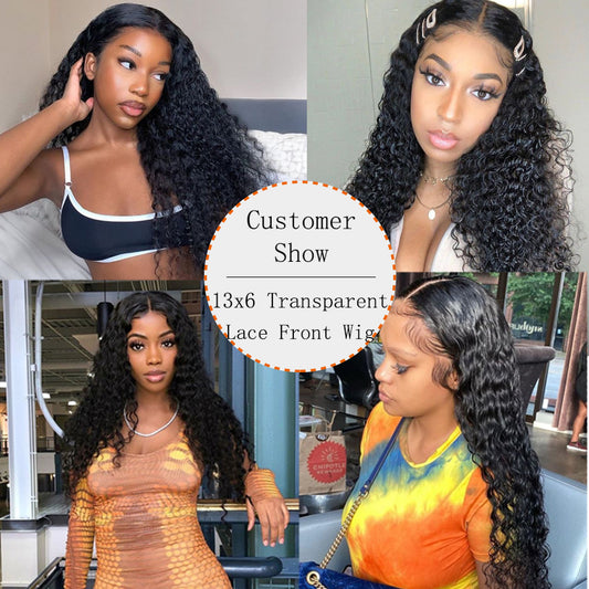 Curly Transparent Lace Front Wig 150% Density 13x6 Glueless Lace Wig