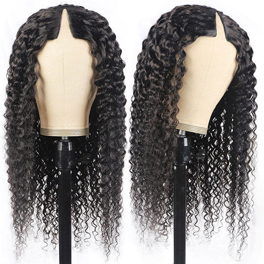 V Part Curly Wig Glueless Human Hair Wig