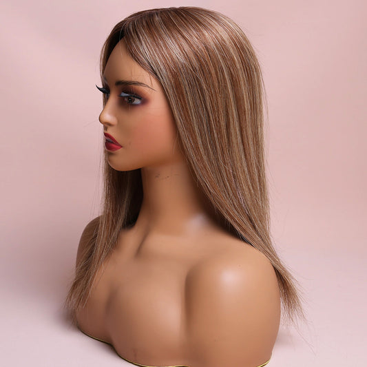 Realistic Highlight Brown Topper Hair Human Hairpiece For Women Hair Loss