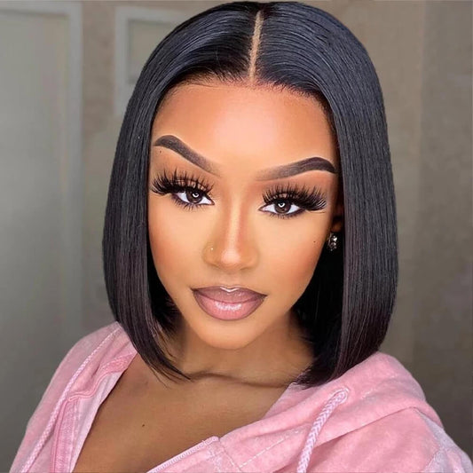 Straight Short Bob Human Hair Wigs 13x4 Transparent Lace Front Wig