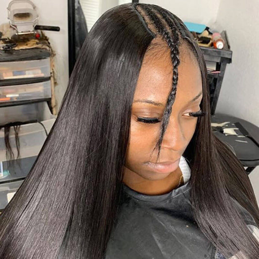 U Part Wig Human Hair Silky Straight Long Natural Black Wig