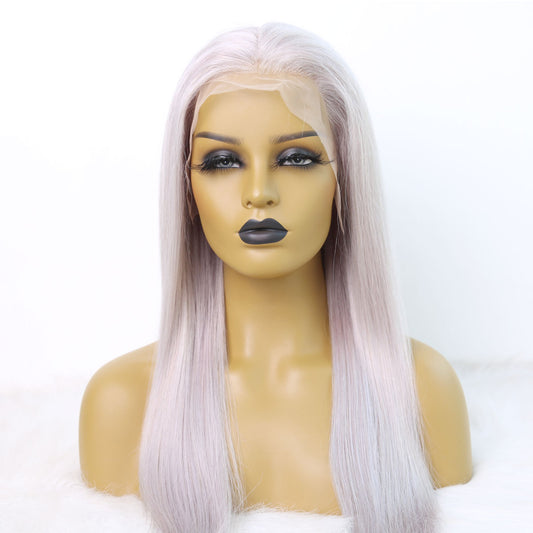13x6 Transparent Lace Straight Gray Human Hair Wig