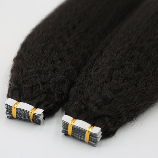 Kinky Curly Tape in Hair Extension 12-30inch Human Hair Pu Weft