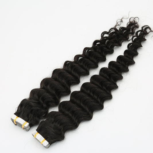 Deep Wave Tape in Hair Extension 12-30inch Human Hair Pu Weft