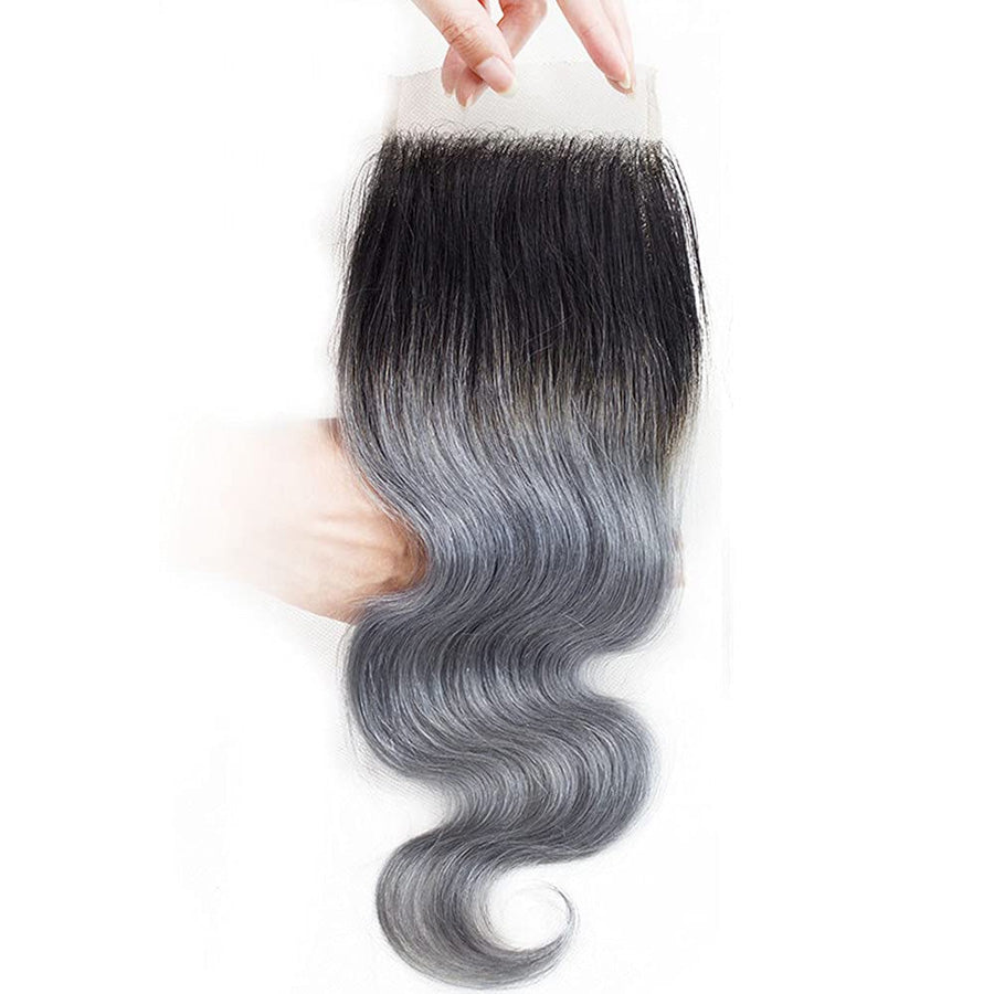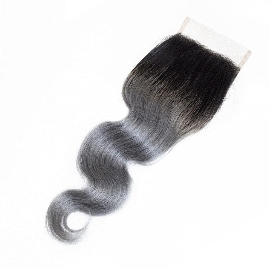#1B Grey 4x4 Ombre Human Hair Top Lace Closure