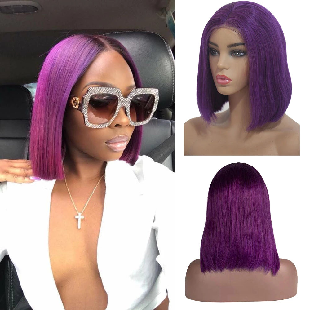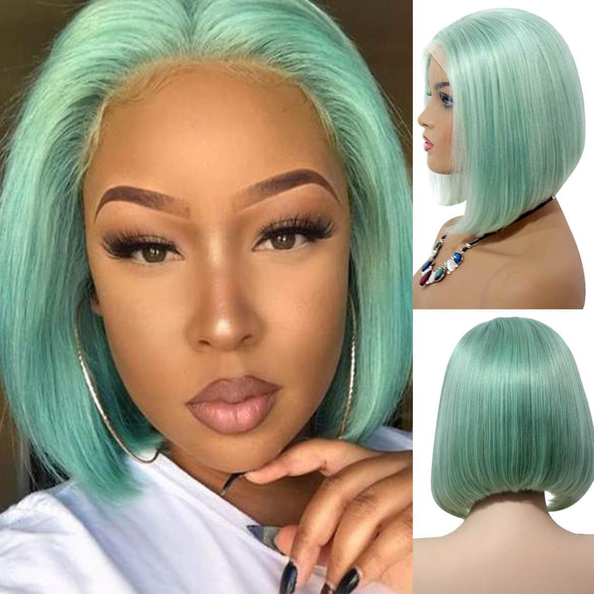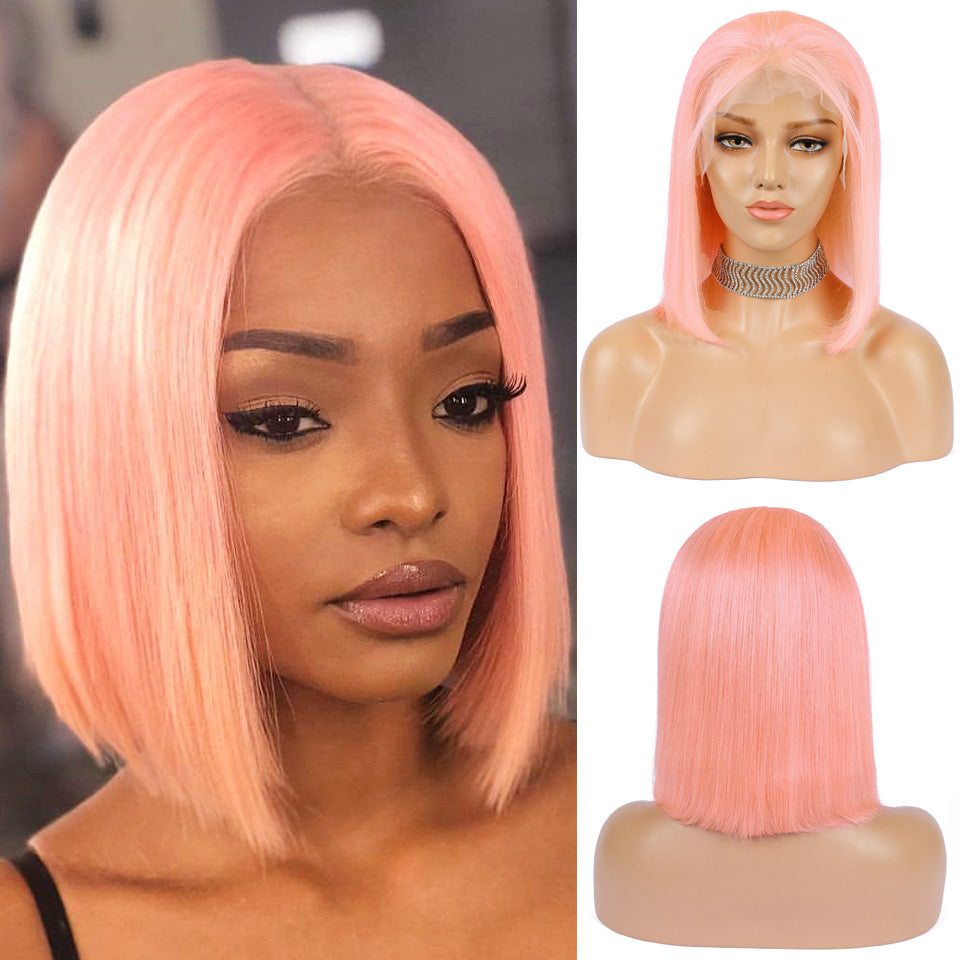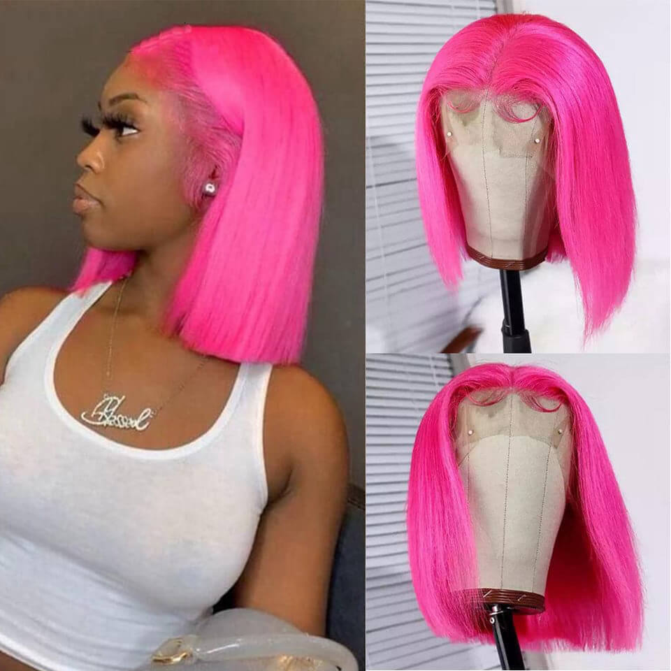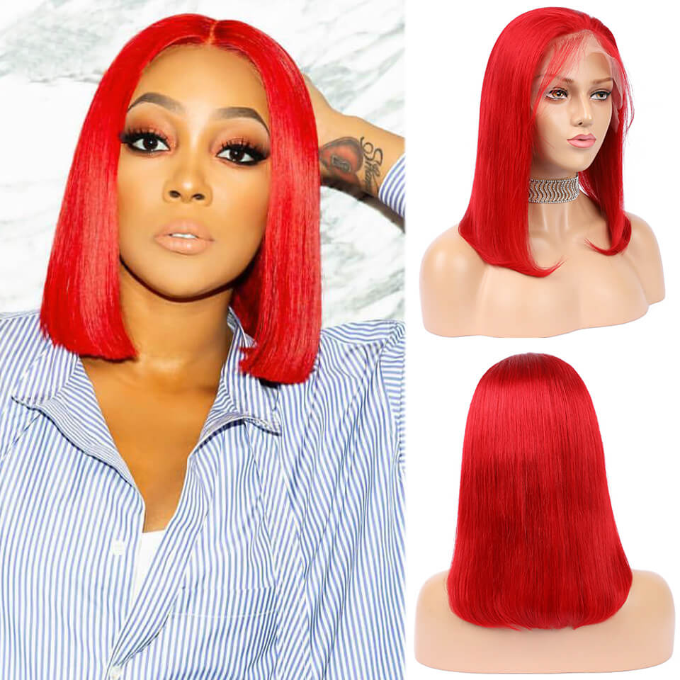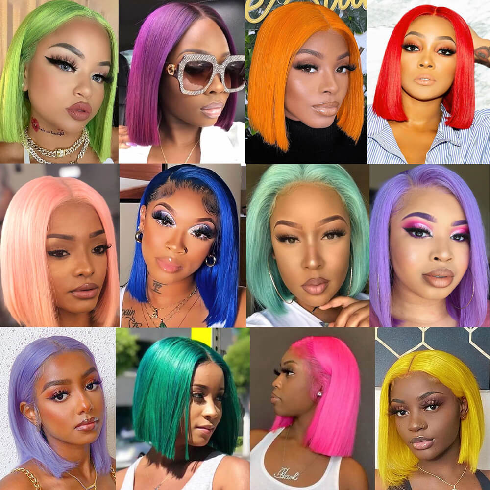 Colored bob wigs bring more fun to daily life, especially when you are tired of black hair, why not try a colored bob wig? Red bob makes you enthusiastic, blue bob highlights your wisdom, and pink bob makes you look young and lovely. Our colored bob wigs are made of 100% human hair, which allows you to style the hair as you wish. The wig cap is constructed with a 13x4 lace frontal with gradual hair density in front hairline which give you a most reslistic look.
