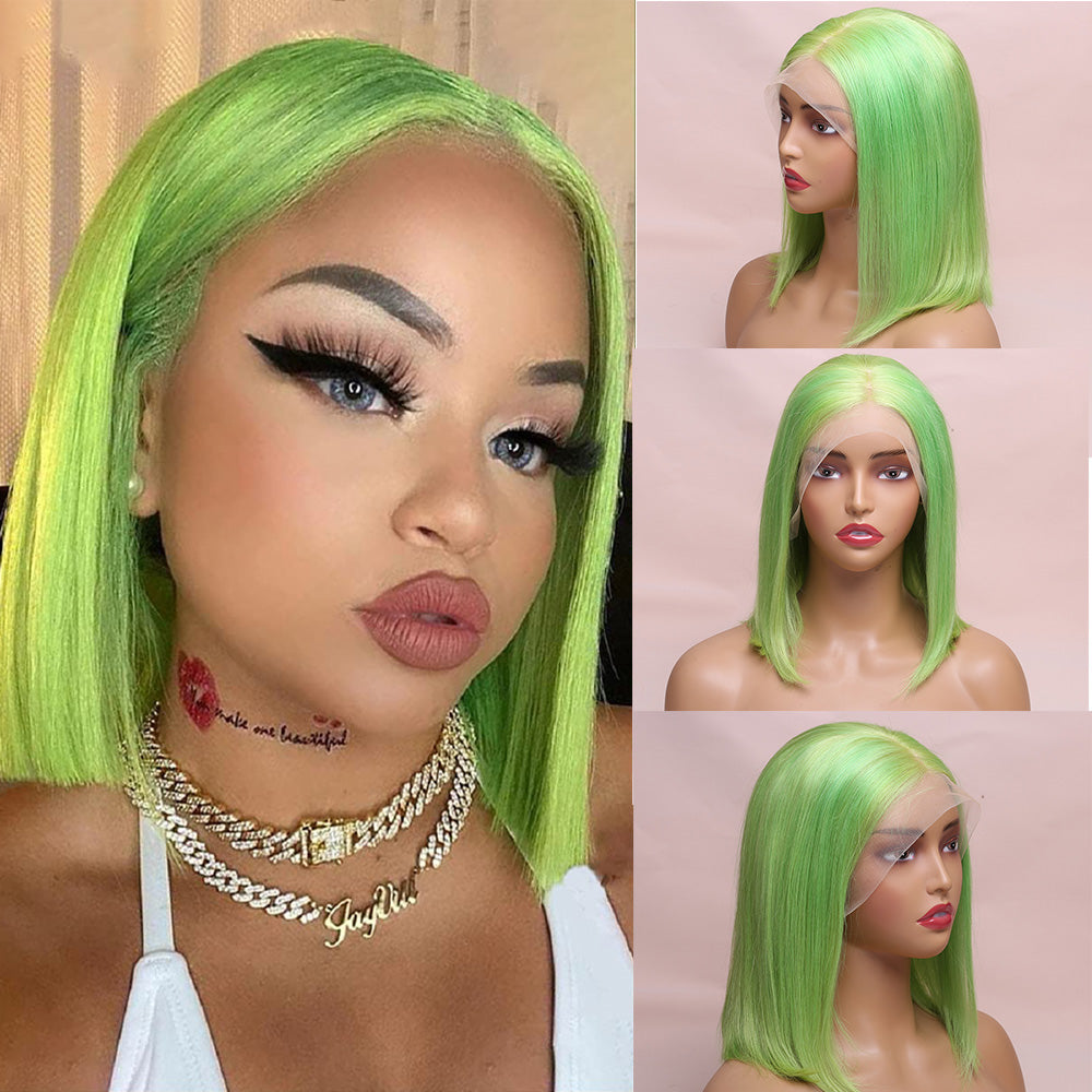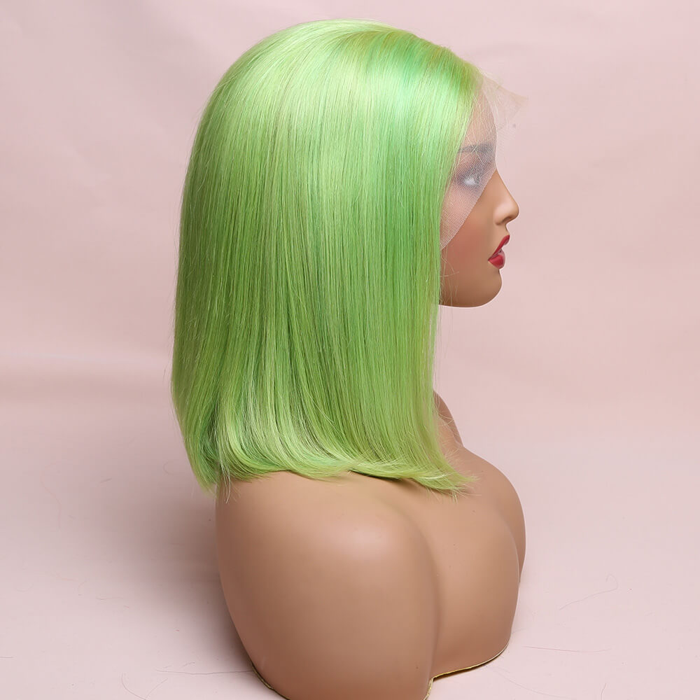 Human Hair Green Straight Lace Frontal Bob Wig Short Wig