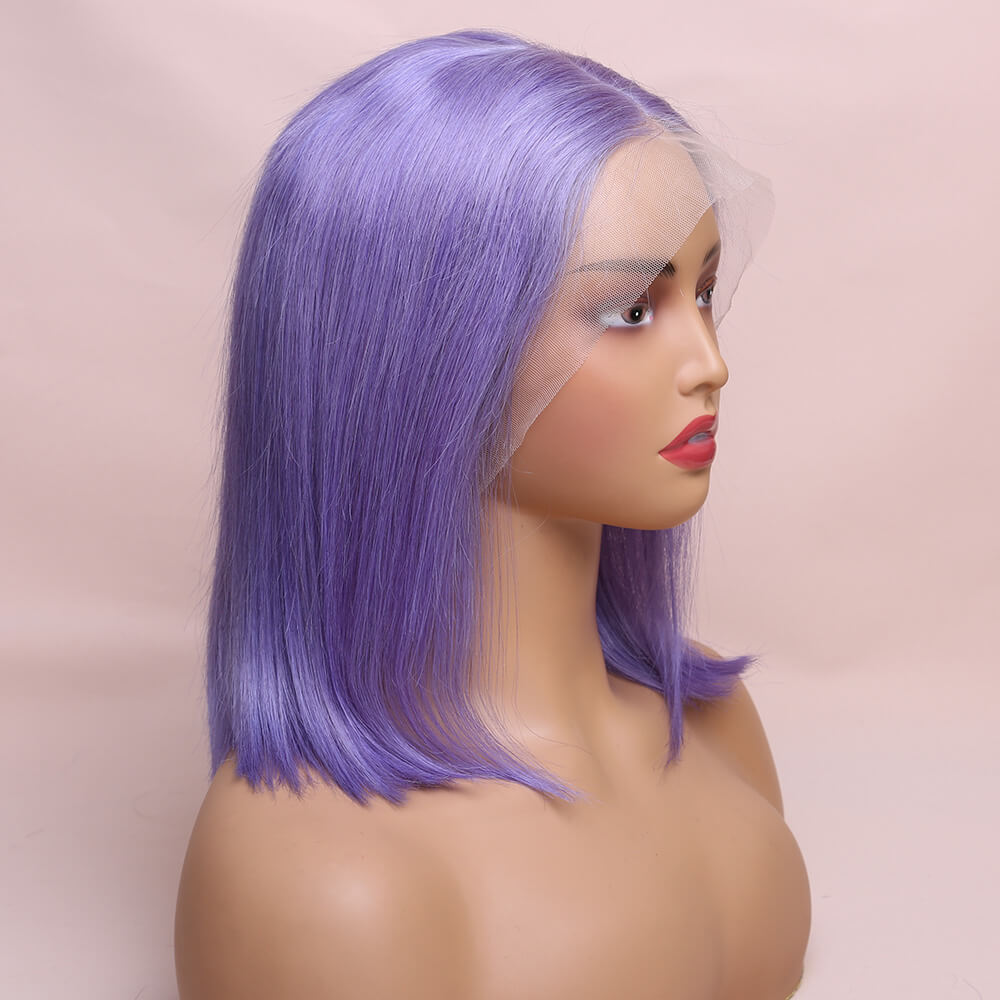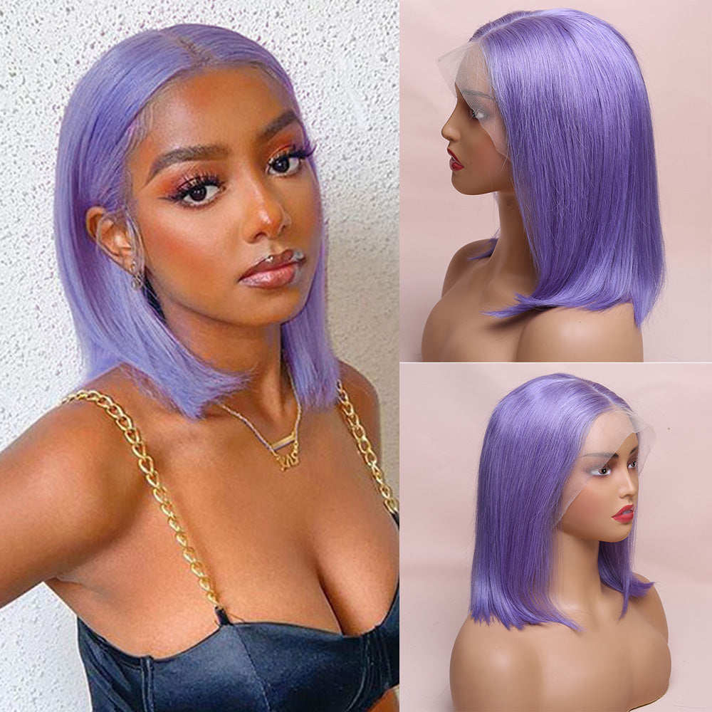 Human Hair Lavender Purple Straight Lace Frontal Bob Wig Short Wig