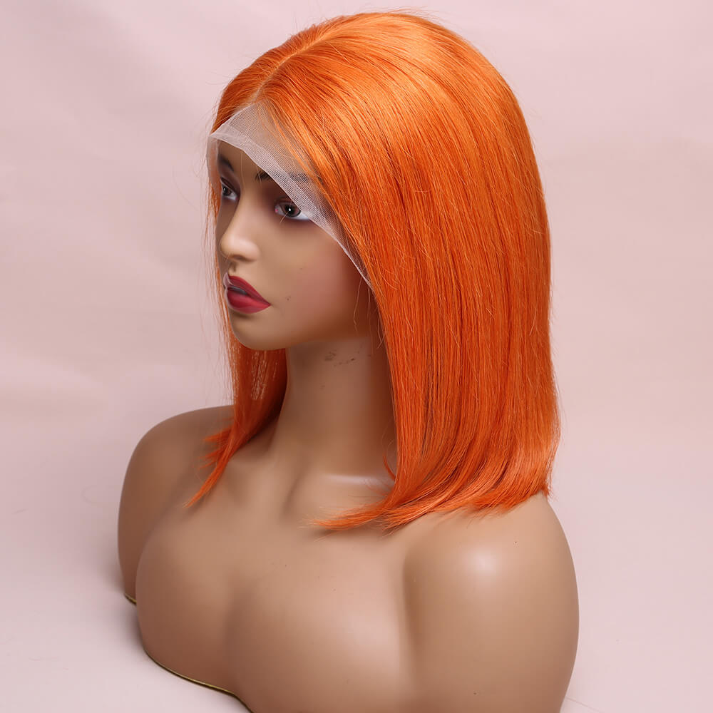 Human Hair Orange Straight Lace Frontal Bob Wig Short Wig