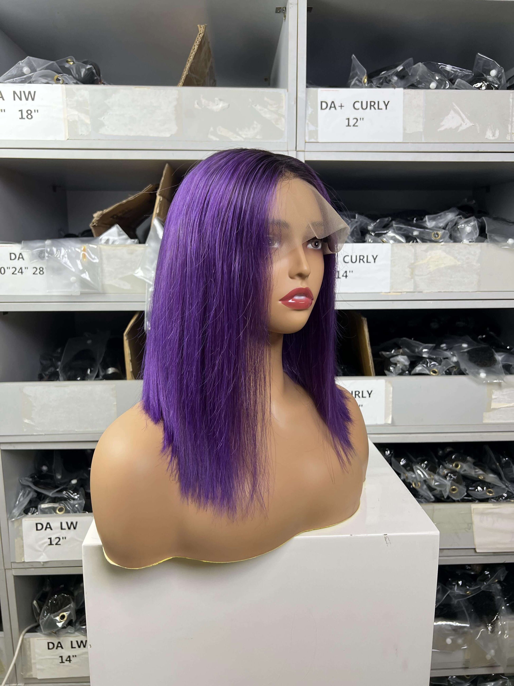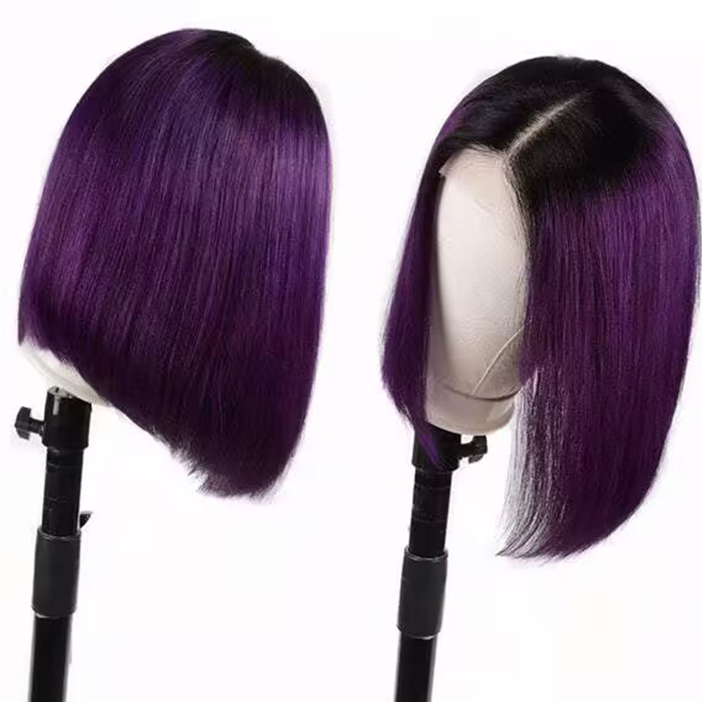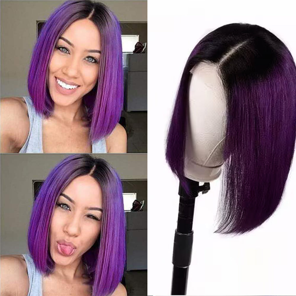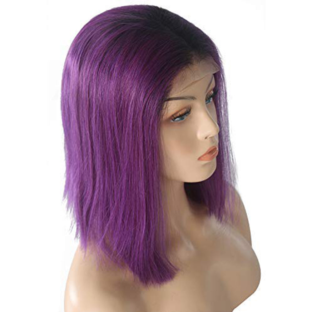 Human Hair Ombre #1B/Purple Straight Lace Front Bob Wig Short Wig