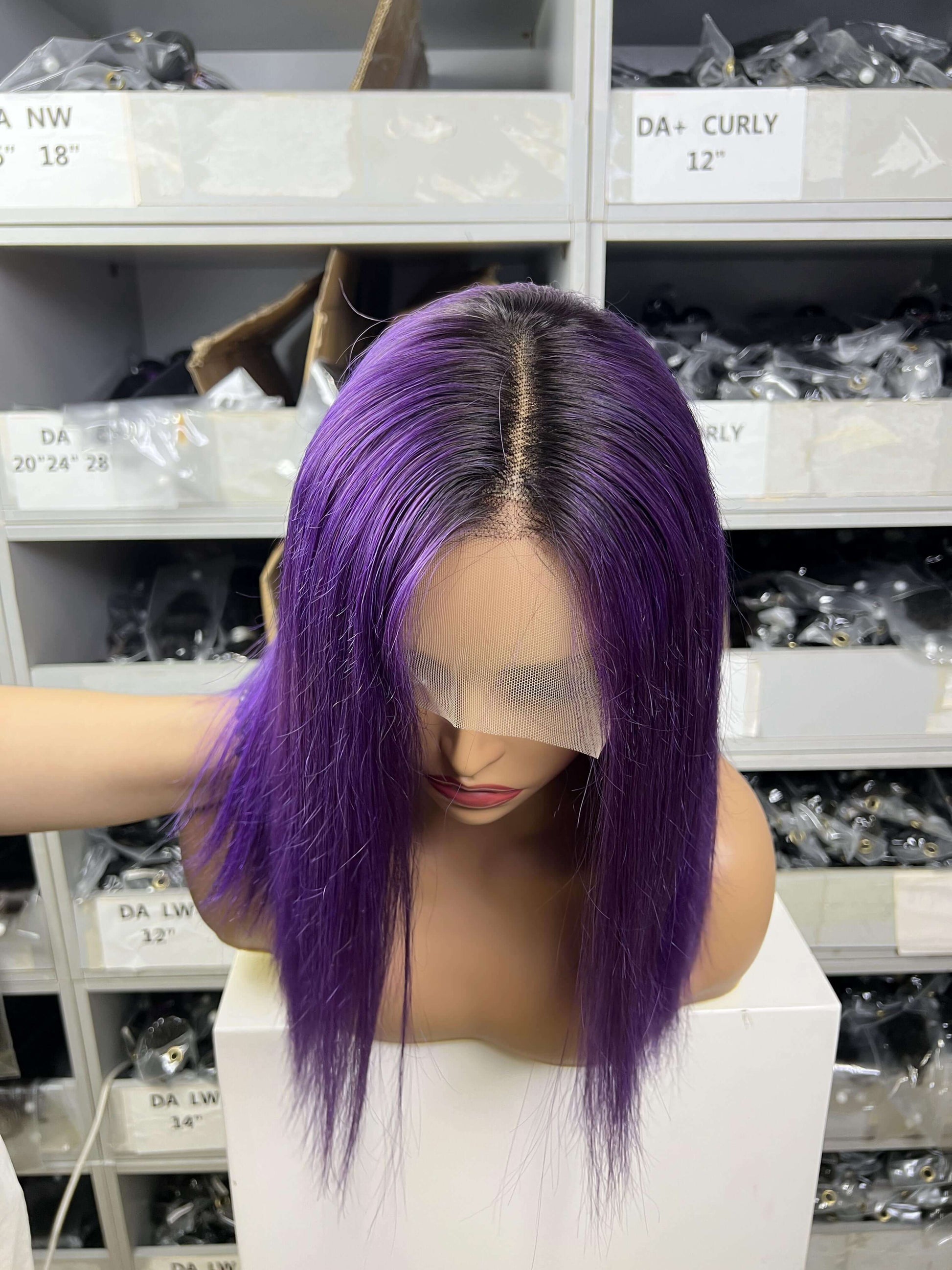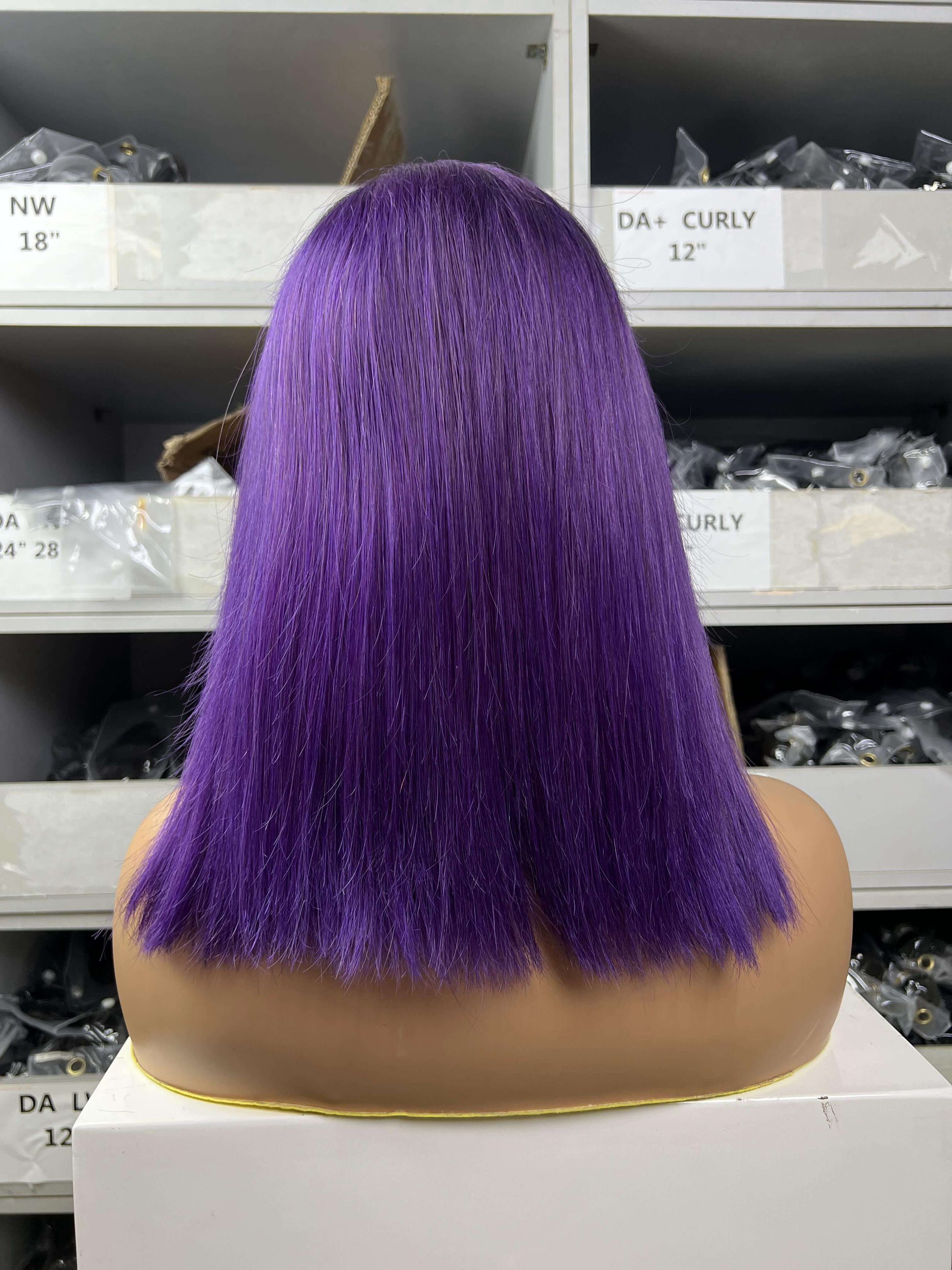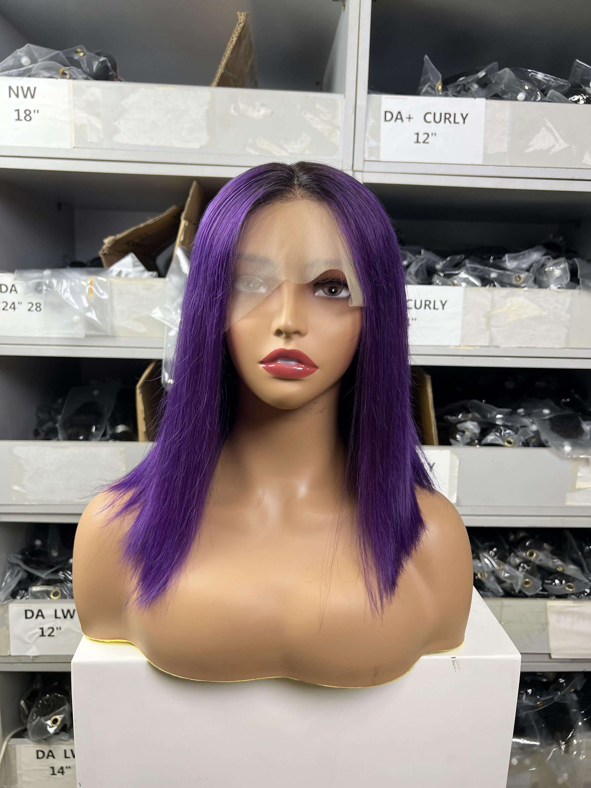 Human Hair Ombre #1B/Purple Straight Lace Front Bob Wig Short Wig