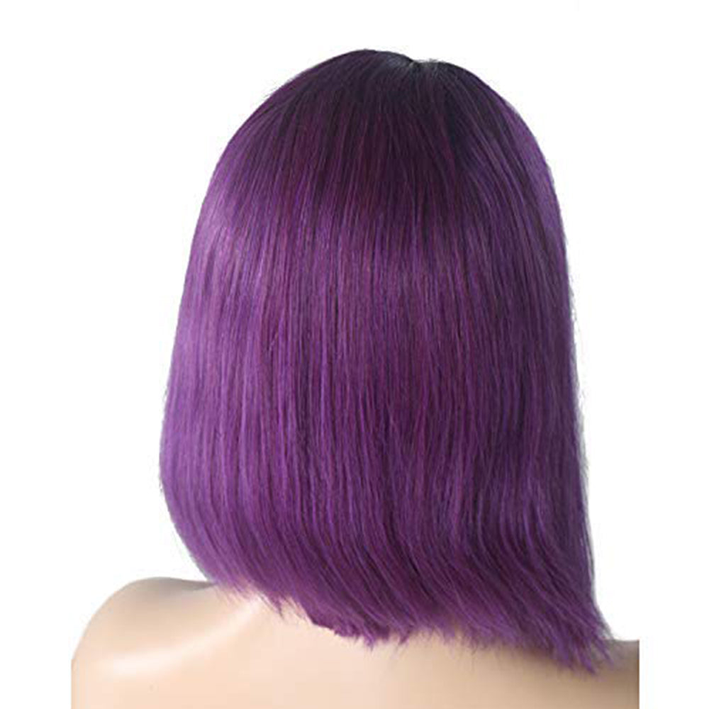 The ombre color transitions from #1B black to a lively purple, giving you a captivating look. The fashion bob wig is beautifully crafted from high quality human hair for a natural result. Its short length makes it easy to manage, while the lace front ensures the wig is securely and comfortably in place.